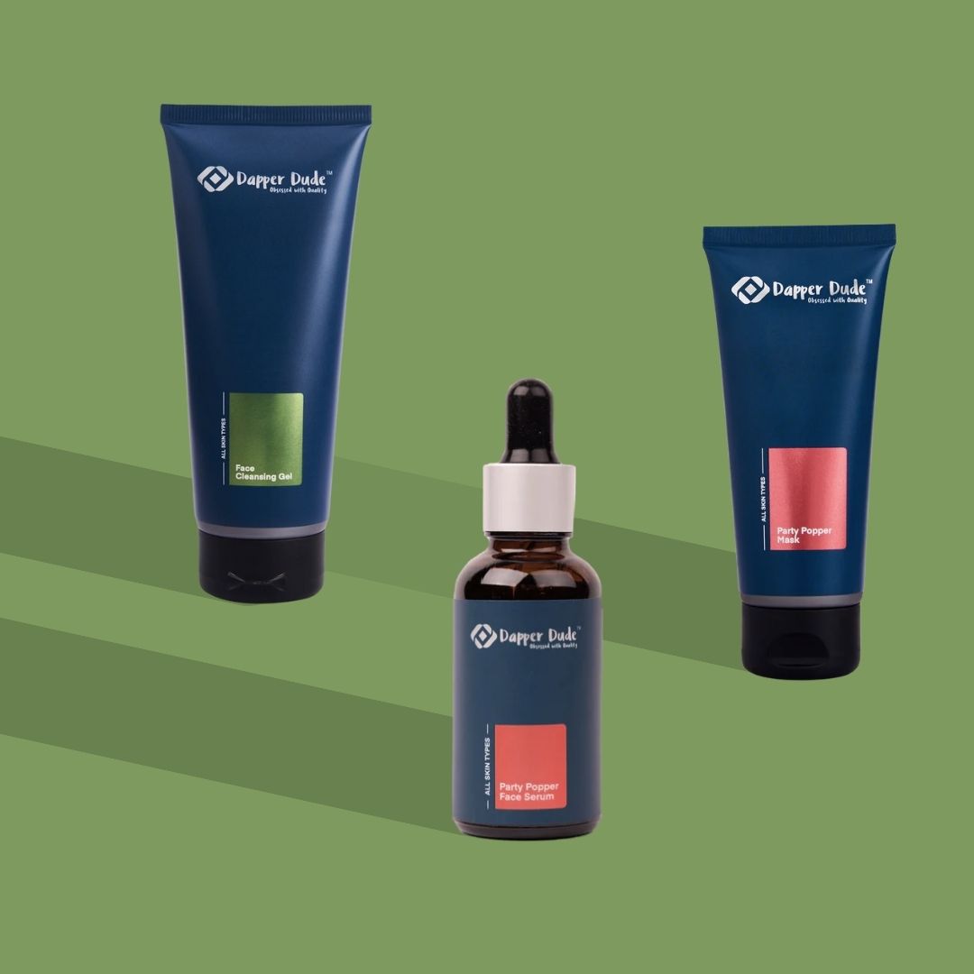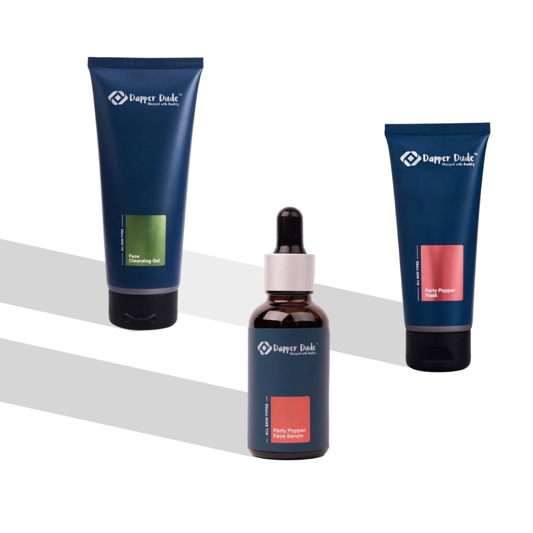 Now you don’t have to worry to look your best before hitting the Party, Dapper Dude has got the right products for you to make you look glowing before you head for the party. Dapper Dude Party Popper Combo Kit is a perfect combination of Face Cleansing Gel, Party Popper Serum and Party Face Mask which will give you the party look and confidence you need.